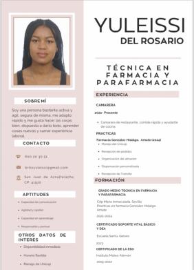“Soy una persona muy activa, ágil y capaz para el puesto de trabajo, que le gusta trabajar en equipo, aportar sus conocimientos y sumar experiencia laboral.”